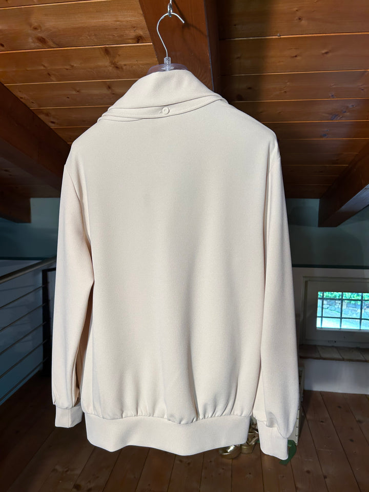 Crepe cardigan with elastic band at hem and cuffs and removable sash belt
